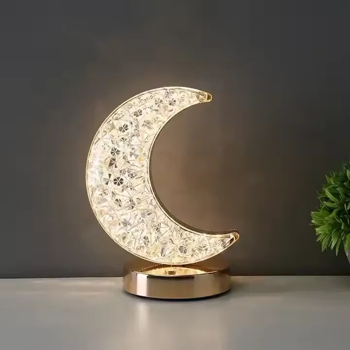 المصباح بتصميمه الكريستالي المتألق بينثر الضوء بشكل ساحر يشبه الفوانيس، وبيخلق جو روحاني دافئ سواء على السفرة أو في ركن الزينة أو حتى على الكومودينو في غرفة النوم.