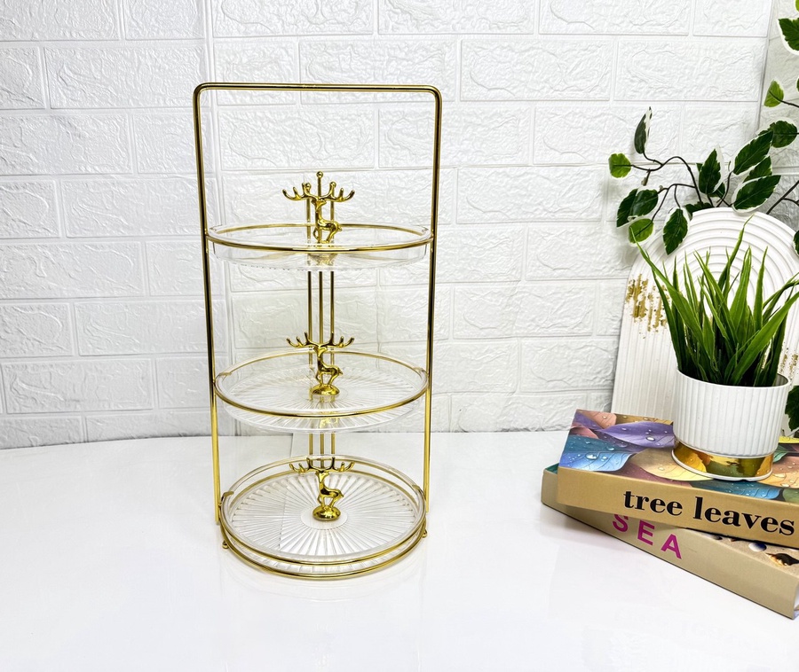 التصميم المميز بثلاثة أدوار يسمح لك بعرض الحلويات بطريقة منظمة وأنيقة، مع توفير مساحة على السفرة.