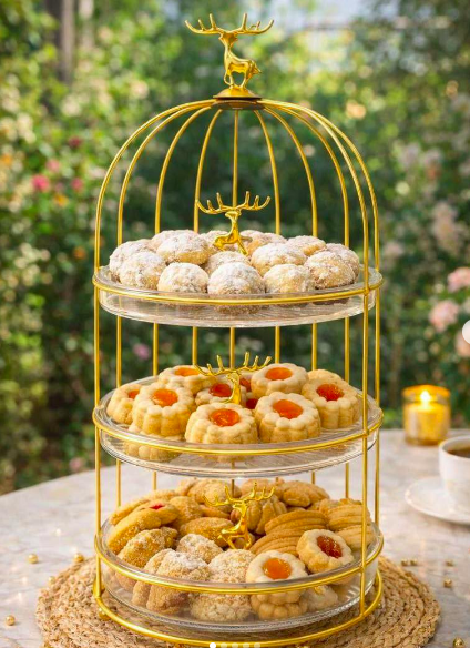 سواء لتقديم كحك العيد، البسكويت، الشوكولاتة أو الحلويات، ستجعل هذه الشيالة التقديم أكثر جمالًا وتنظيمًا.